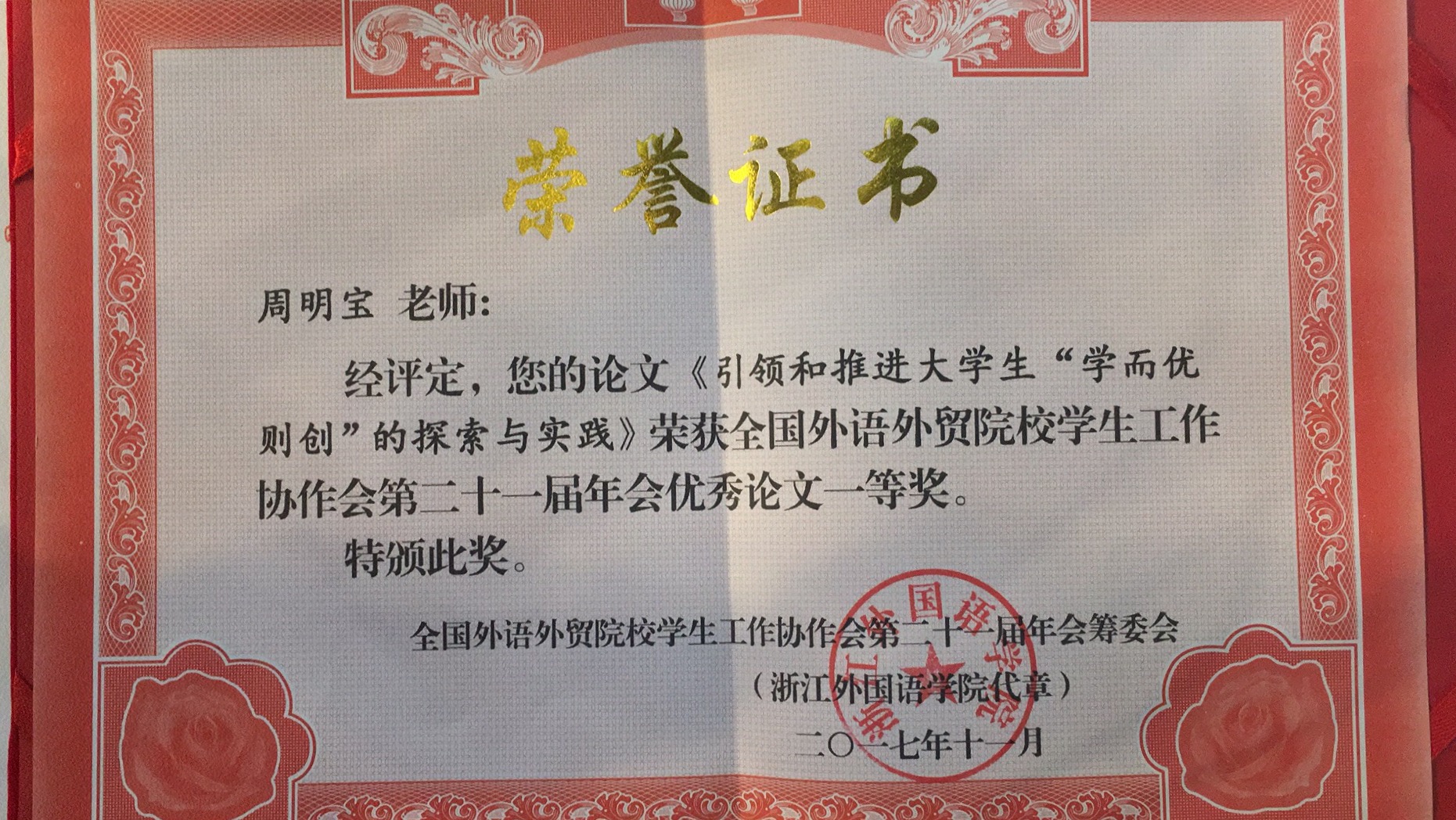 澳门六合彩跑狗图 老师参加全国外语外贸院校学生工作协会第二十一届年会并喜获嘉奖