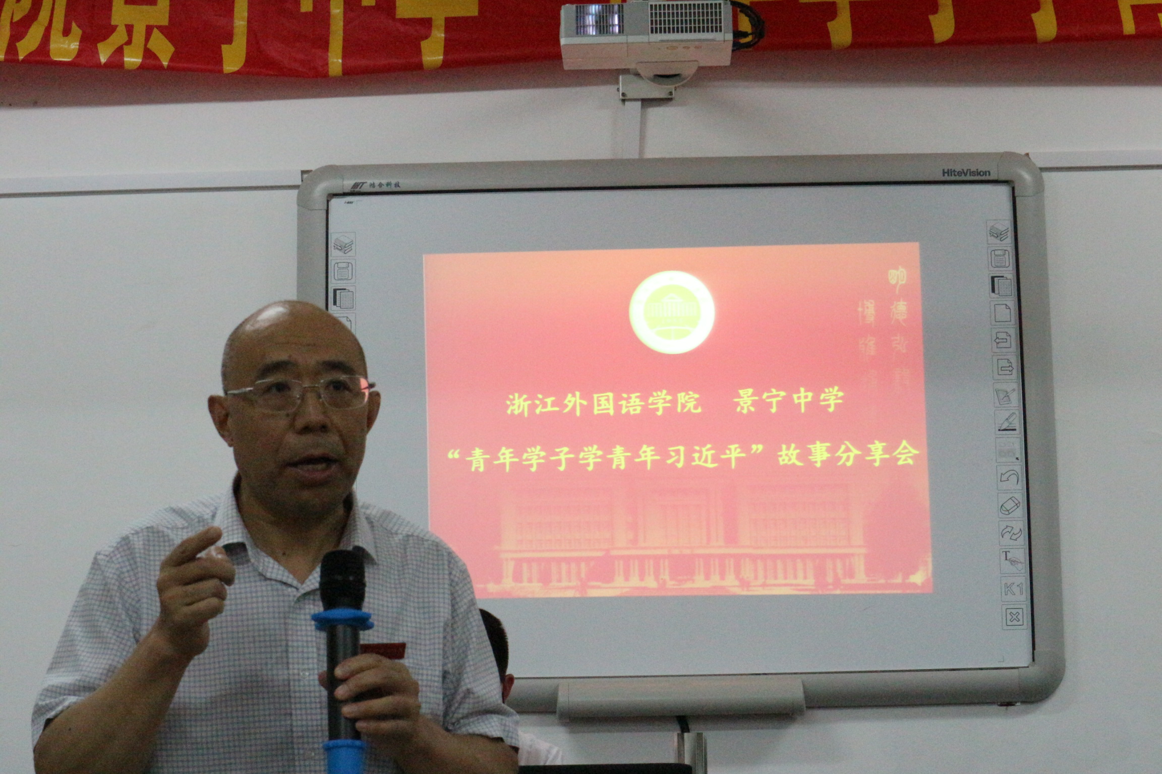 景宁教育局副局长、景宁中学校长陈战耕在寄语中强调社会需要理想,需要榜样,需要伟人的力量。习近平总书记身上矢志不移的理想信念、爱国为民的家国情怀、勤奋好学的进取精神、吃苦耐劳的优秀品格值得当代学子品读感悟。浙江外国语学院对我校开展的青年习近平故事分享会,意义深刻,影响巨大。