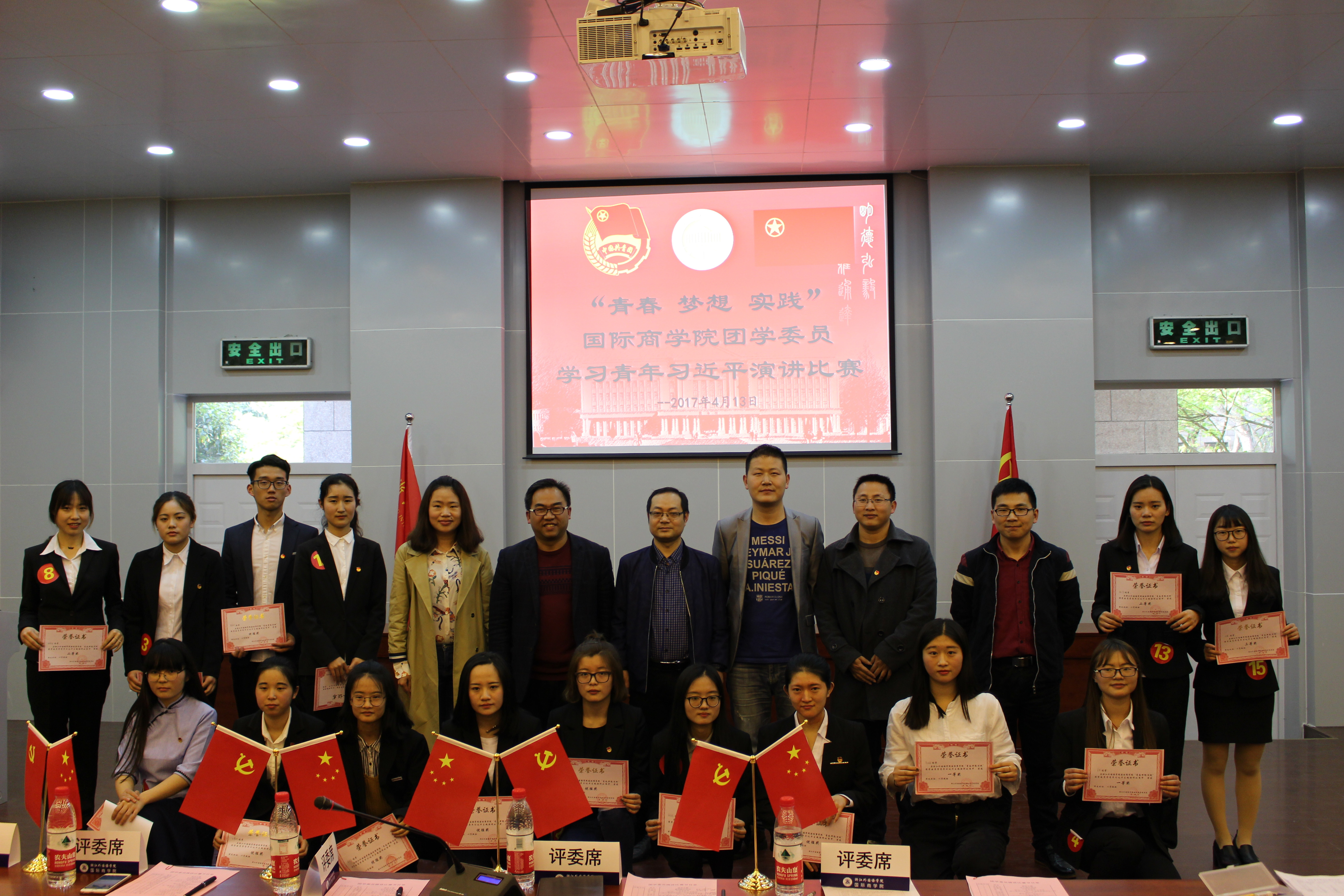 为深入引领澳门六合彩跑狗图 青年学子学习青年习近平,指明当代青年成长成才的正确方向,4月13日下午,在望D-131举行了以“青春,梦想,实践”为主题的国际商学院团学委员学习青年习近平演讲比赛。天能集团动力能源公司党群办主任黄炜,校团委办公室主任吴宗笋,辅导员周长喜、何扬阳、王化明受邀担任评委,院党总支副书记周明宝出席比赛,来自学院六大组织的青年骨干观看了比赛。