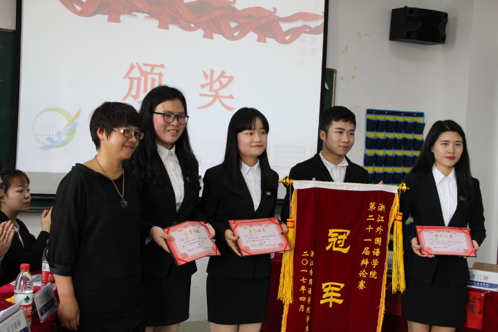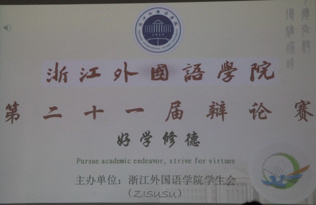 4月20日下午,第二十一届校辩论赛决赛于品院A501顺利举行,形式与政策教研处主任朱秀芳老师,校辩论队金牌指导周明宝老师,文化教研室主任毛巍蓉老师,社科部思品与道德修养教研室主任兰小平老师,校学生会秘书长吴宗笋老师作为评委出席本次比赛。此外,浙江工业大学学生会代表、浙江科技学院学生会代表、浙江外国语学院学生会代表作为嘉宾来到了比赛现场。