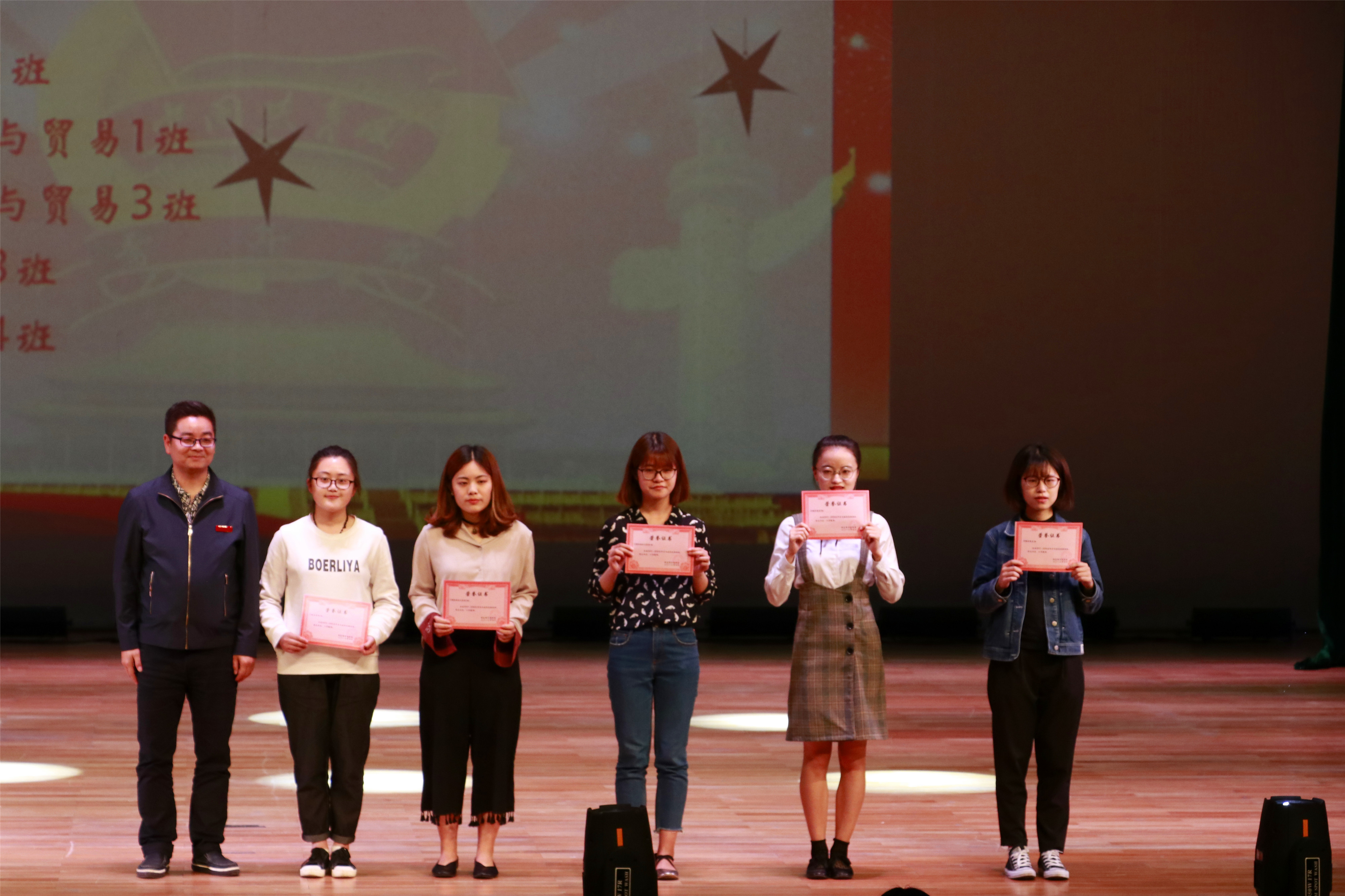 晚会当中,商学院“五四”青年节青春榜样颁奖隆重举行,其中14国贸2班获得浙江省活力团支部称号,16国商1班等十个团支部获评“活力团支部”,14国商1班等五个班级获评学风建设优胜班级,朱力等40名同学获评“优秀团干”,叶圣涛等71名同学获评“优秀团员”,各位嘉宾分别为其颁奖。此次表彰大会旨在发挥优秀青年榜样作用,激励广大团员青年努力学习、积极创新、勤奋工作,在身边优秀团员、团干、先进团组织的引领下不断增强团员意识,积极发挥先锋模范作用。希望澳门六合彩跑狗图