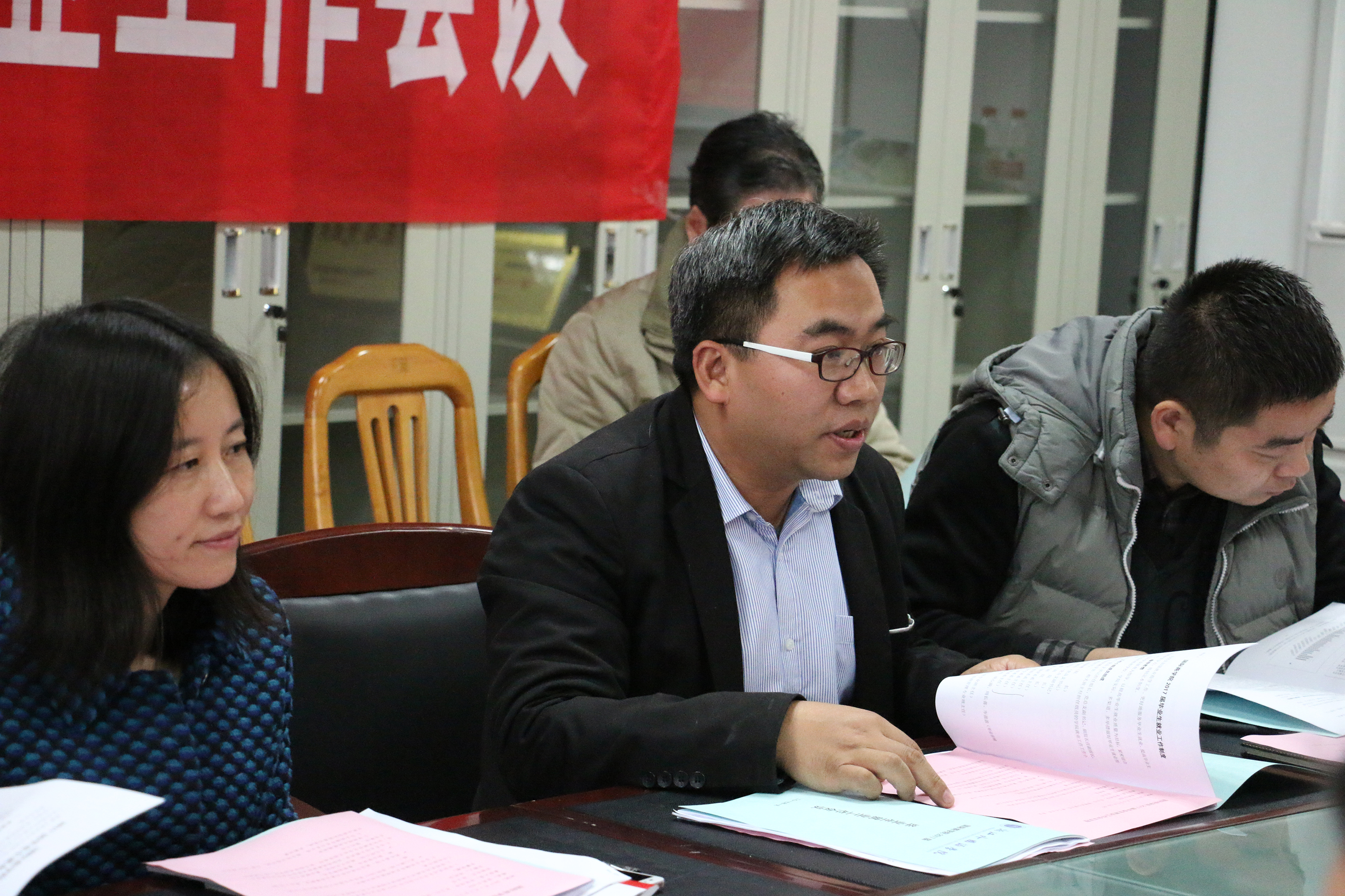 1月5日下午,商学院2017届毕业生就业工作会议在望院D-428召开。学院党总支书记叶丽红、副院长高静,院办公室主任钱伟、院学工办主任梁汲媛、各系主任、毕业班班主任、全体辅导员参加了本次会议,会议由学院党总支副书记周明宝主持。大会分析了当前毕业生面临的就业形势,明确了2017届毕业生就业工作任务与目标,部署了下一阶段重点任务,并提出就业工作的新思路和新要求。