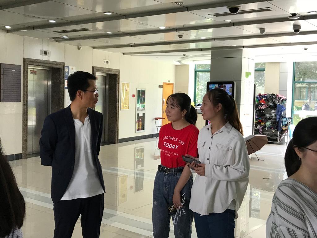 “一天看书多少小时?”“专业课复习的怎么样了?”在图书馆外一楼大厅,赵院长来的同学们身边,详细询问他们的复习条件和进展。赵院长对同学们不惧酷暑,坚持勤奋复习,奋发图强、自强不息的精神表示欣慰,并祝愿同学们学有所获,如愿以偿取得考研好成绩。院领导一行还为暑假留校的同学发放学院定制的防暑降温物品。