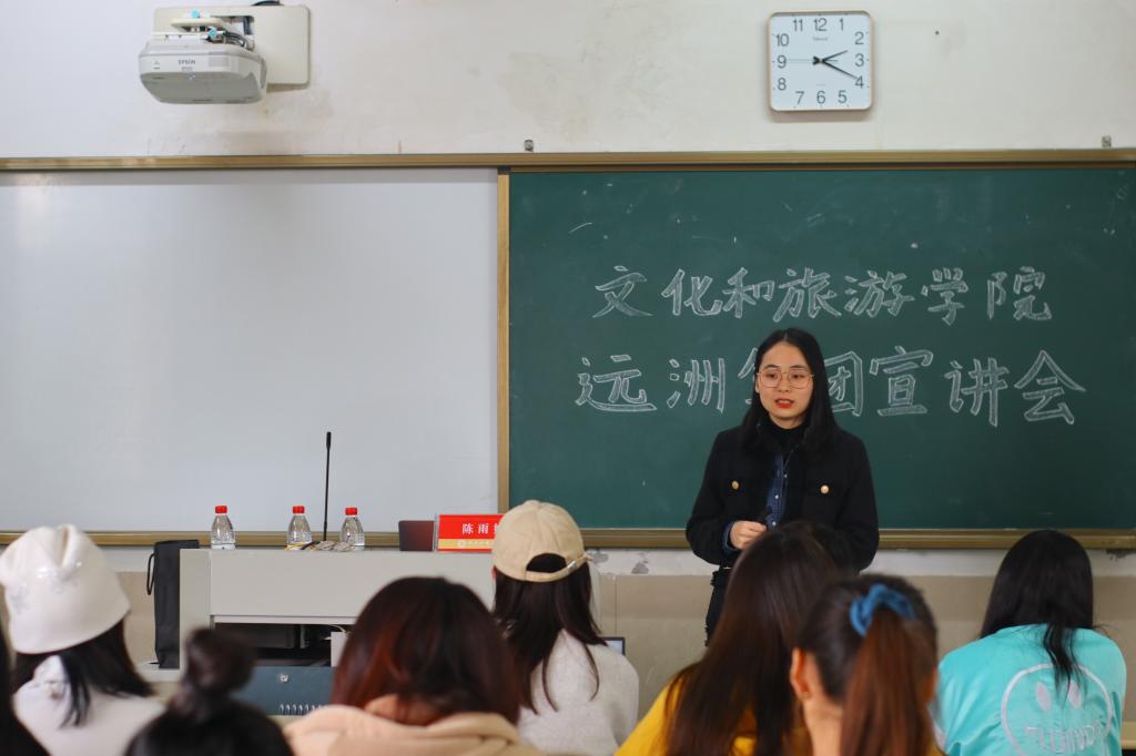 范芸芸对汪伟红一行的到来表示热烈欢迎。她介绍了学院发展现状和人才培养相关情况。郭晓笑从校企合作的角度,希望远洲旅业为学生提供更多实习就业机会,助力学生成长成才。