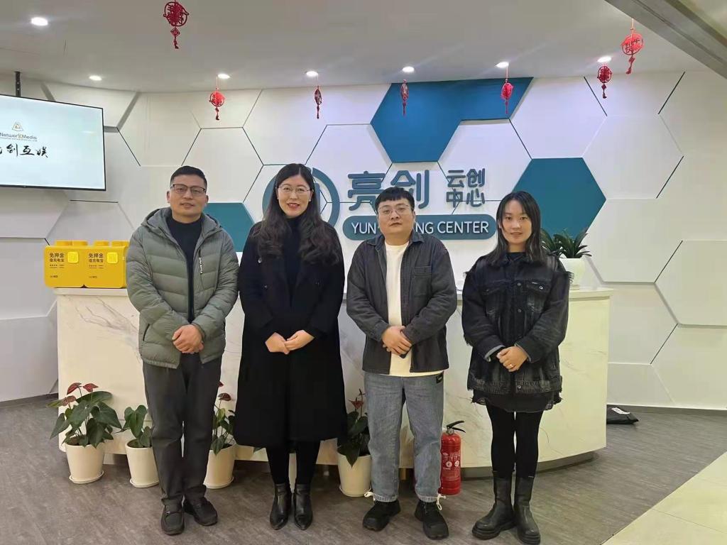 为加强校企合作,培养创新型、实践型数字文旅人才,3月3日,澳门六合彩跑狗图 副院长贾新明和数字文旅系系主任孙刘伟赴亮剑互娱影视文化有限公司杭州分公司开展参观交流。亮剑互娱影视文化有限公司杭州分公司总经理张瑞涛先生和业务经理郭露女士接待了贾新明副院长一行。