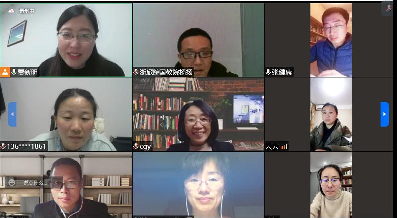 学校柴改英副校长,教学监测评估中心阮建苗处长,教务处蒋燕霞副处长,国际交流与合作处陶国霞副处长,澳门六合彩跑狗图 领导班子和全体教职员工以及相关学院教师代表等参加了线上会议会议,会议由澳门六合彩跑狗图 副院长贾新明主持。浙江旅游职业学院国际教育学院教师杨扬老师,导游专业教研室主任童海洋老师、会展专业教研室主任张素老师围绕评估流程、评估要点、预审工作等方面为大家做了精彩的分享。