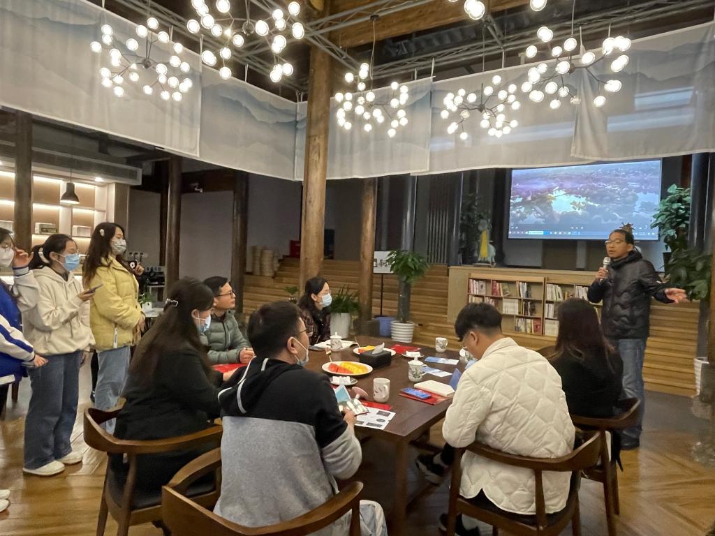 3月21日下午,学院副院长贾新明、数字文旅系系主任孙刘伟以及指导教师代表王敏娴老师带领澳门六合彩跑狗图 6个大学生创业团队的12名学生代表来到“今夕共西溪”现场,与“今夕共西溪”项目总经理吴斌,宁波亮剑互娱杭州公司总经理张瑞涛、嘉兴公司总经理庞锐、嘉兴公司路璐老师一起进行交流。