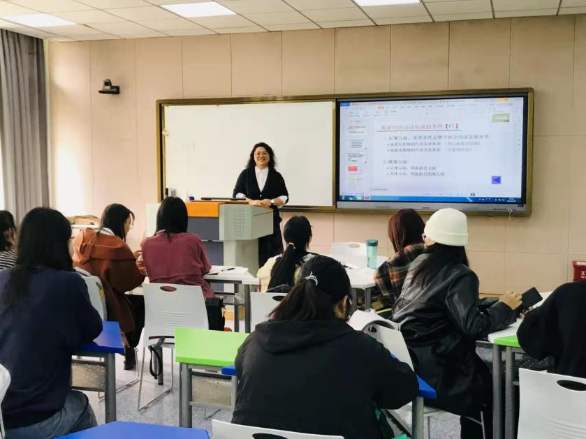 随后,老师们在望D315集体听了黄瑾老师的《旅游经济学》课程。黄老师的课程讲授实现了线上和线下资源的无缝衔接,讲授的“旅游经济活动形成的条件”章节,内容生动且贴近旅游经济的运行现实。