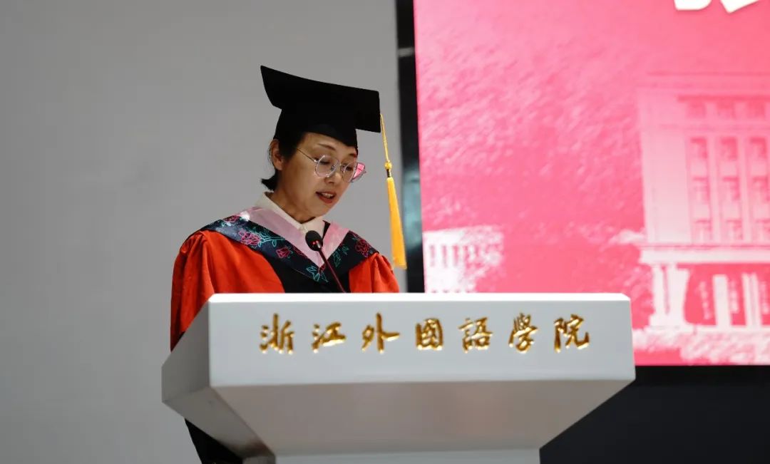 毕业生代表18会展1班吴杰和第九届“我最喜爱的老师”代表高静老师先后发言。回首大学时光吴杰满含激动地说:“在浙外生活的这四年,让我感受到校园真正该有的温度,充满人情味和烟火气的校园让我更加不舍。但落日归山海,少年归心之所向。大学的毕业并不代表结束,而是新阶段的启程。”在依依离别之际,高静老师叮嘱道:“想念母校之时,手机就是一张回家的车票,你们在那头,老师在这头,纵使相隔千山万水,母校永远是你们最长情的陪伴。”