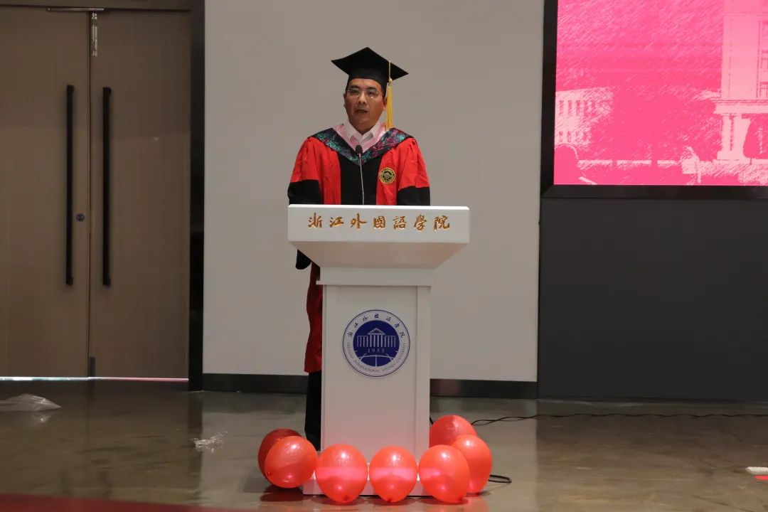 浙江外国语学院副校长张环宙、徐勇等学校学院领导在主席台前台就坐。副校长张环宙教授在毕业典礼上致辞,副校长徐勇宣读《关于表彰2022届省级优秀毕业生的决定》《关于表彰2022届校级优秀毕业生的决定》和“我最喜爱的老师”名单,并为全体毕业生送上诚挚祝福。澳门六合彩跑狗图