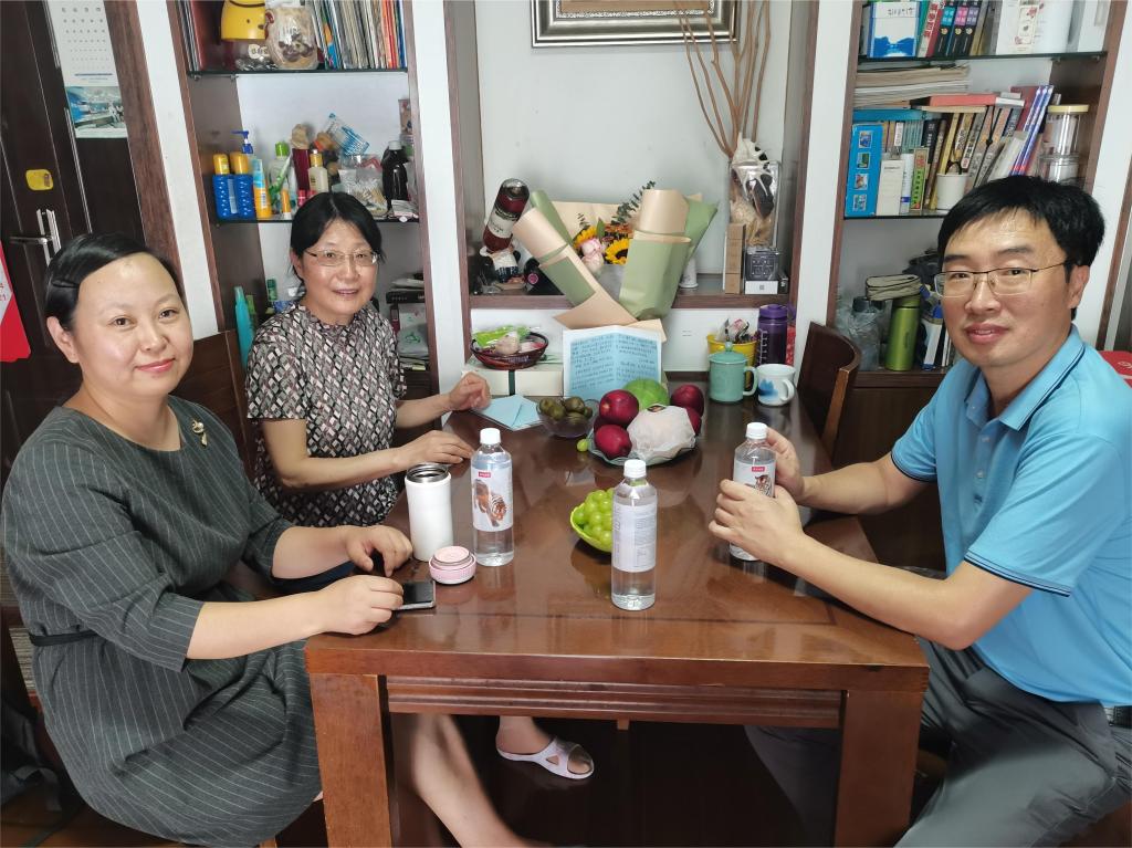 为进一步弘扬尊重老教师的光荣传统,增强退休教职工幸福感和归属感,9月30日下午,正值国庆节、重阳节前夕,院长张健康、党总支书记范芸芸、办公室主管黄琳来到今年退休的蔡依萍老师家中探望慰问,并进行了亲切交流。