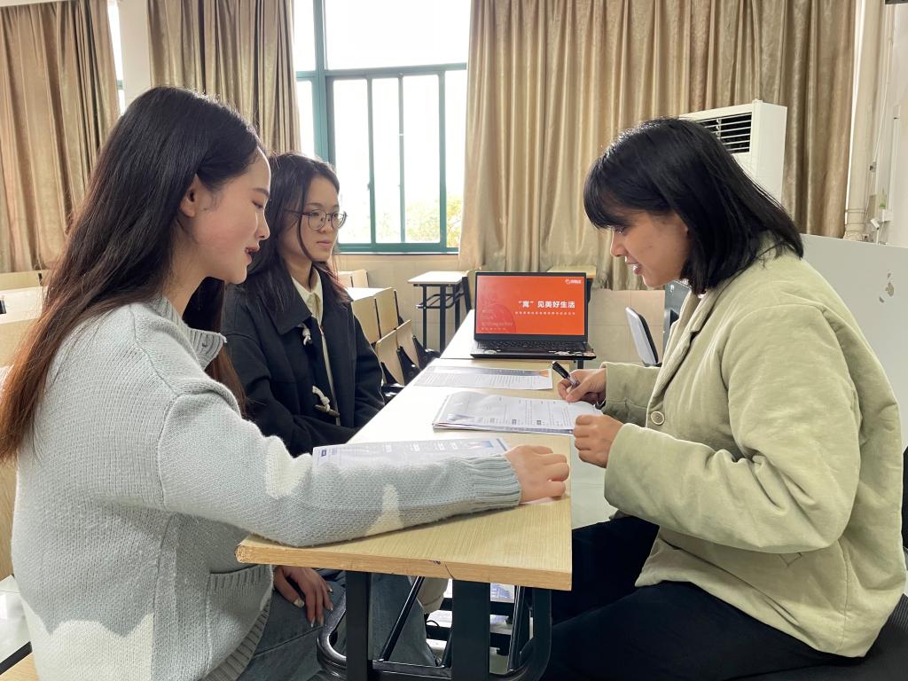 “这个活动太棒了,下个月就要考试了,我有点紧张,上午参加完模拟政治考试,我感觉自己考的还可以。期待后面的老师给我们的试卷进行讲解,我好查缺补漏。”参加完上午的模拟考试后,一位考生说道。此外,学院固定每月举办两次校园招聘宣讲日,邀请建立合作基地的企事业单位和优质用人单位来学院招聘宣讲、现场面试等活动,并对毕业生求职简历进行现场指导。部分学生可以直接和企业现场签订就业意向。