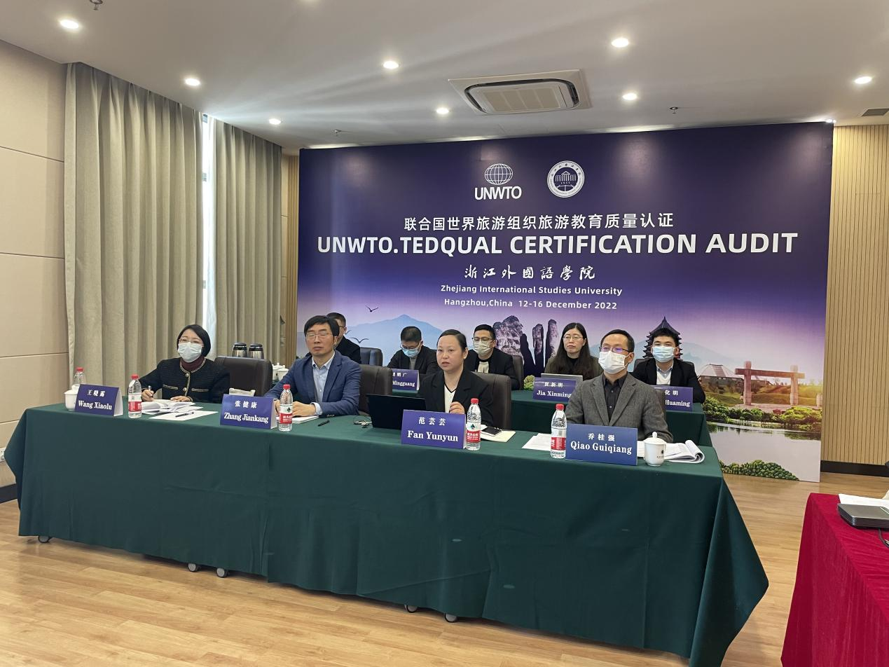 旅游管理专业、会展经济与管理专业“联合国世界旅游组织旅游教育质量认证(UNWTO.TEDQUAL CERTIFICATIONAUDIT)”专家线上远程认证工作正式拉开帷幕。浙江省文化和旅游厅党组成员、副厅长朱海闵、校长洪岗在专家见面上会上作视频致辞。认证官Alejandro Reyes、副校长柴改英出席见面会。学校学生处副处长郭晓笑、人事处副处长张帆、教务处副处长蒋燕霞、科研处副处长应洁琼、计划财务处副处长虞建均、公共事务与资产管理处副处长范馨予、后勤服务中心副主任钱伟,以及参与认证的澳门六合彩跑狗图
