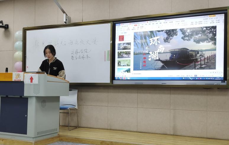 为贯彻落实党的二十大精神,落实“推动文化和旅游深度融合发展”要求,助推红色旅游发展,以培养具备“双创”精神的国际化专业旅游人才为目标,数字文旅系本着“赛训结合,以赛促训”的原则,于2022年11月9日举办了“红色景点、红色旅游线路短途游短视频大赛”,此次比赛也是2021级旅游管理专业3、4班创意策划实践周成果汇报。教师沈朱飞、程华宁担任本次大赛评委。