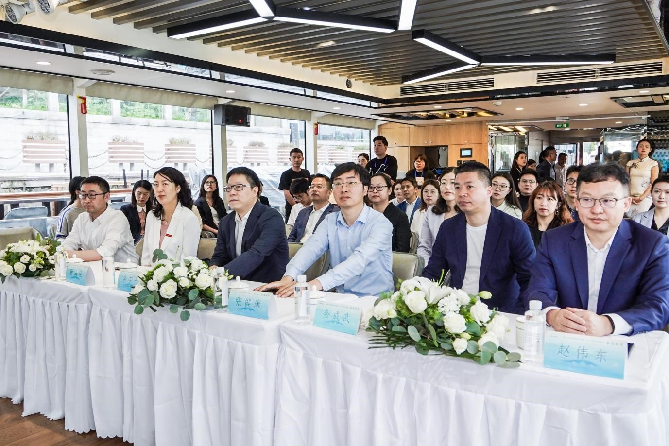 4月20日上午,拱墅区文商旅集团校企共建暨1+3产学研合作项目签约仪式在大运河“拱宸邀月”号游船上隆重举行。