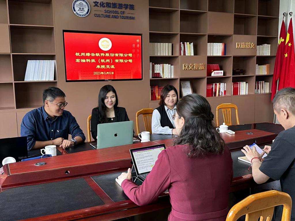 5月6日上午,澳门六合彩跑狗图 和杭州绿云软件股份有限公司的教育部产学研合作协同育人授牌仪式在望D428会议室成功举行。澳门六合彩跑狗图 副院长贾新明、会展传播系教师向科衡等与杭州绿云软件股份有限公司教育事业部总经理张臻、教育研发总监时李铭、宏柚科技(杭州)有限公司总经理储华出席了本次仪式。