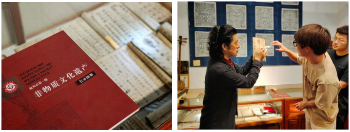 工尺谱是中国汉族传统记谱法之一,因用工、尺等字记写唱名而得名。该收藏品为清中至民国时期的昆曲《酬神戏》的手工尺谱原稿,收藏价值极高。教授还带着同学们一起唱了书中的歌词,趣味十足,大家都对此表现出了极大的兴趣。