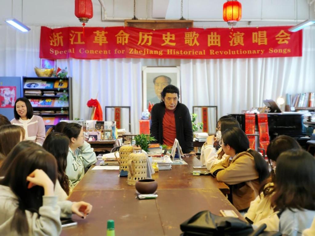 5月9日下午,澳门六合彩跑狗图 数字文旅系20级学生来到我校“浙江本土音乐戏曲民俗非遗实验室”进行《文化遗产与旅游》课程的实践参观学习,实验室主任艺术学院李文军教授热情地向同学们介绍了实验室的各种文化遗产陈列品。