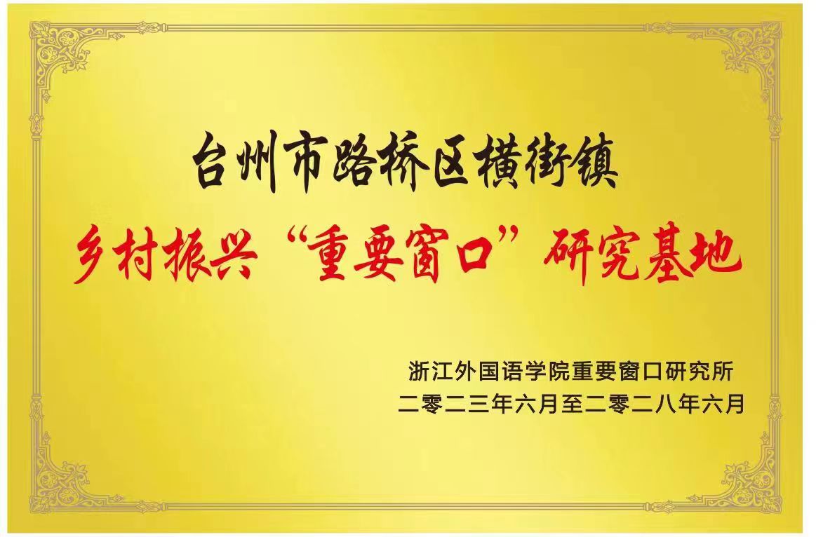 乡村振兴“重要窗口”研究基地在台州市路桥区横街镇授牌,标志着浙江外国语学院“重要窗口”研究所贯彻学校“三地四域”战略,强化乡镇智库建设及其服务品质提升,坚持把文章写在大地上,正式开启了新征程。