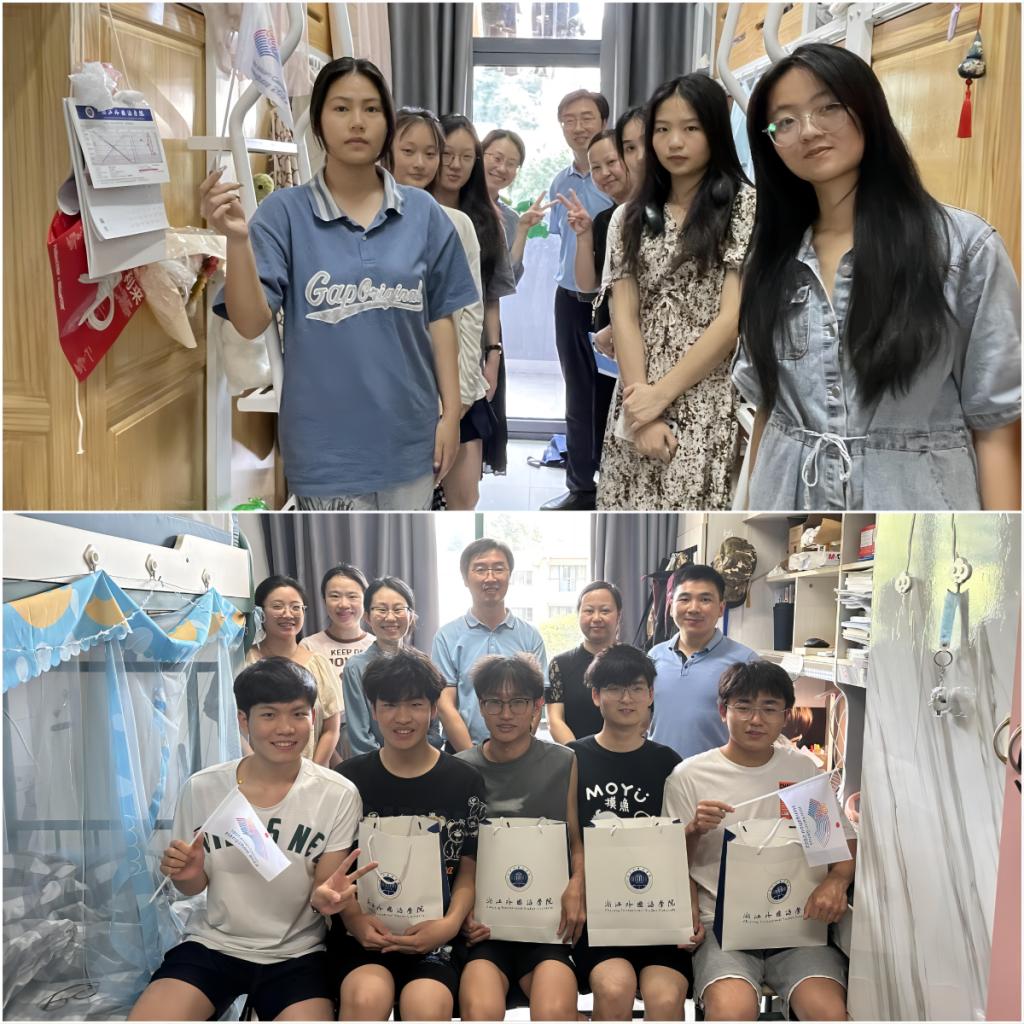 在学生寝室,张健康院长对各位同学在服务亚运会中展现的文旅精神和风采给予赞许。他勉励同学们传承我校“小青荷”的志愿服务精神,全力以赴,助力亚运。范芸芸书记在了解了同学们的排练情况后,询问大家的困难与需求,赞许同学们用汗水浇灌青春、用奋斗助力亚运的奉献精神。陈超副书记结合“青年学子学青年习近平”学习教育,鼓励同学们奋进坚守。她还叮嘱大家保证休息,注意安全。