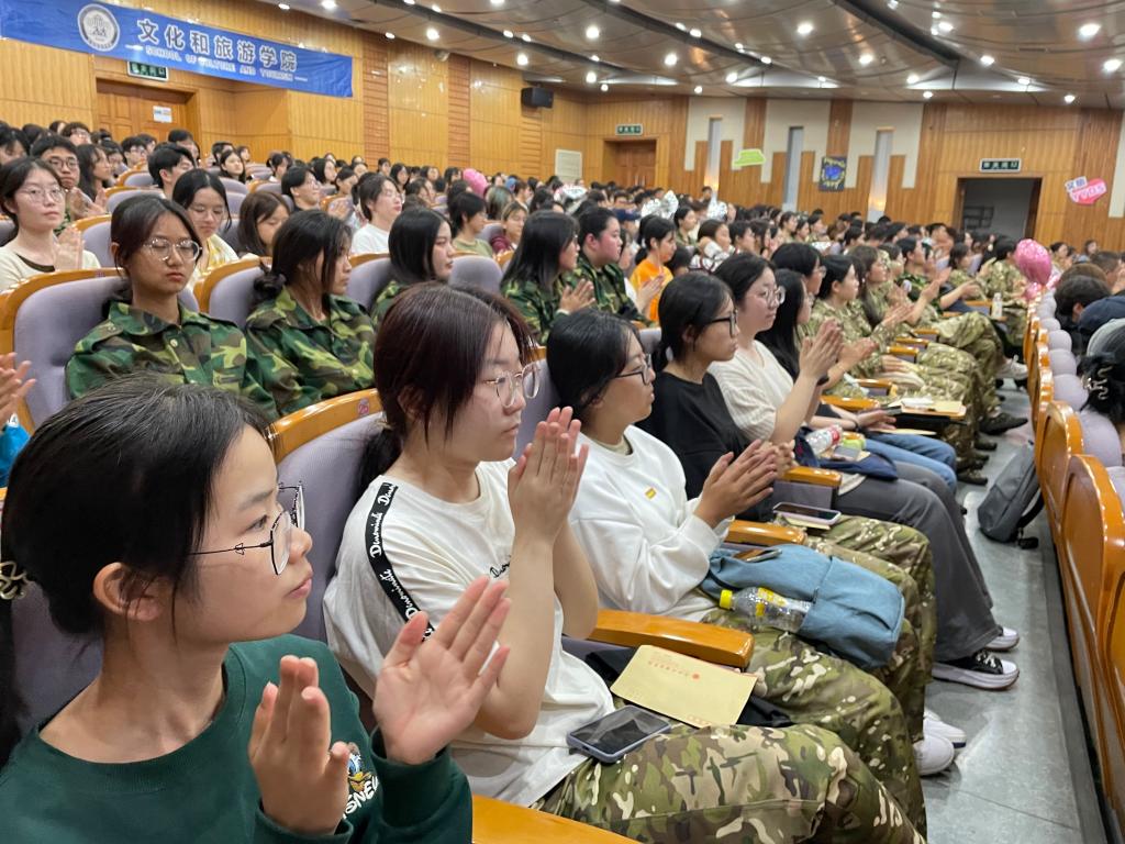 范芸芸书记通过“开启文旅生活”这一话题为切入口,并建议在“大学四年的规划里胸有成竹,才能不慌不忙”。范芸芸书记对“浙江、外国语、学院”三个词语逐步解释。对“浙江”,她从“红船精神”讲起,谈到浙江作为改革开放先行地和习近平新时代中国特色社会主义思想重要萌发地;对“外国语”,范芸芸书记则表示“学习好一门外语”是未来四年里值得考虑的方向;对“学院”,她从学院发展和文旅行业讲起,鼓励同学们努力学习专业知识,追求属于自己的诗和远方。