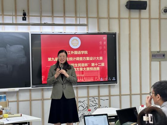 10月12日晚,浙江外国语学院第九届统计调查方案设计大赛暨浙江省“民生民意杯”第十二届大学生统计调查方案大赛预选赛在望B105落下帷幕。省赛评审浙江工商大学工商经济统计系教师朱贺,大赛负责教师贾新明,大赛指导教师袁晓婷、应舜受邀担任评委。本次大赛自5月启动,历经5个多月的初赛、暑期实地调研和数据分析和复赛。在本次决赛中,共计九支参赛队伍就各自的选题、调查过程、统计分析、研究结果与建议等方面展开了精彩陈述。后续九支队伍将代表学校参加省赛。