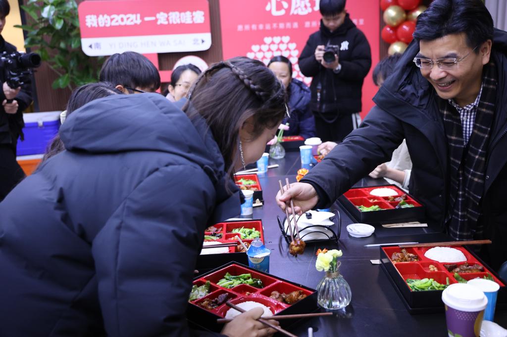 同学们说,2024年到来之际,学院组织年夜饭,让他们感受到了学校的关怀。大家将以实际行动不辜负老师们的期待。祝愿学校在新的一年里乘风破浪,再创辉煌。