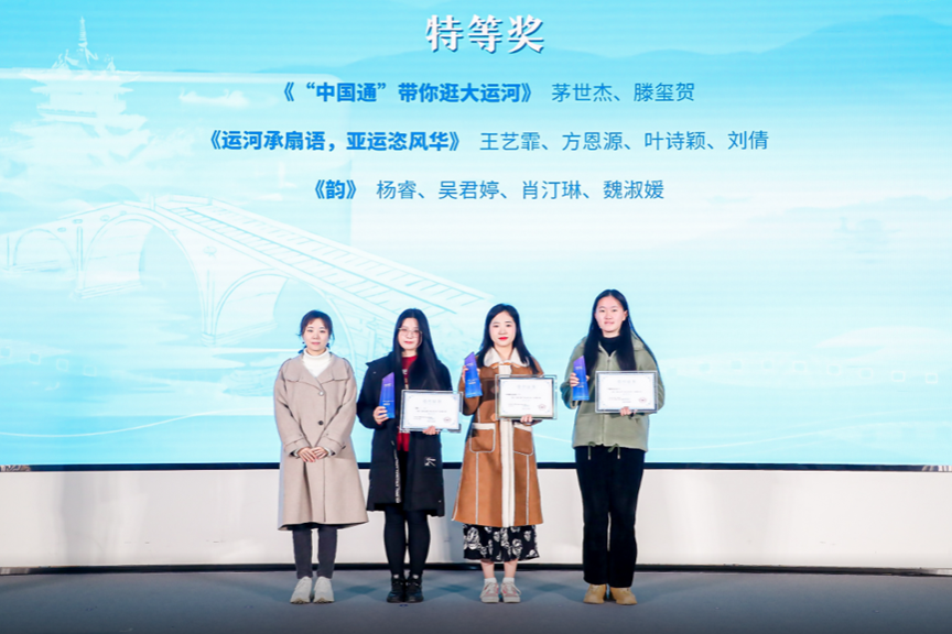 在“UP!我的新时代·SHU说大运河”——“迎亚运盛会 展运河古韵”短视频大赛中,我校王艺霏团队作品《运河承扇语,亚运恣风华》荣获特等奖,谭欣团队作品《运见拱墅》荣获一等奖,另有5项作品荣获二等奖,13项作品荣获三等奖。周晓晶、陈星宇荣获“青年拍客”荣誉称号。