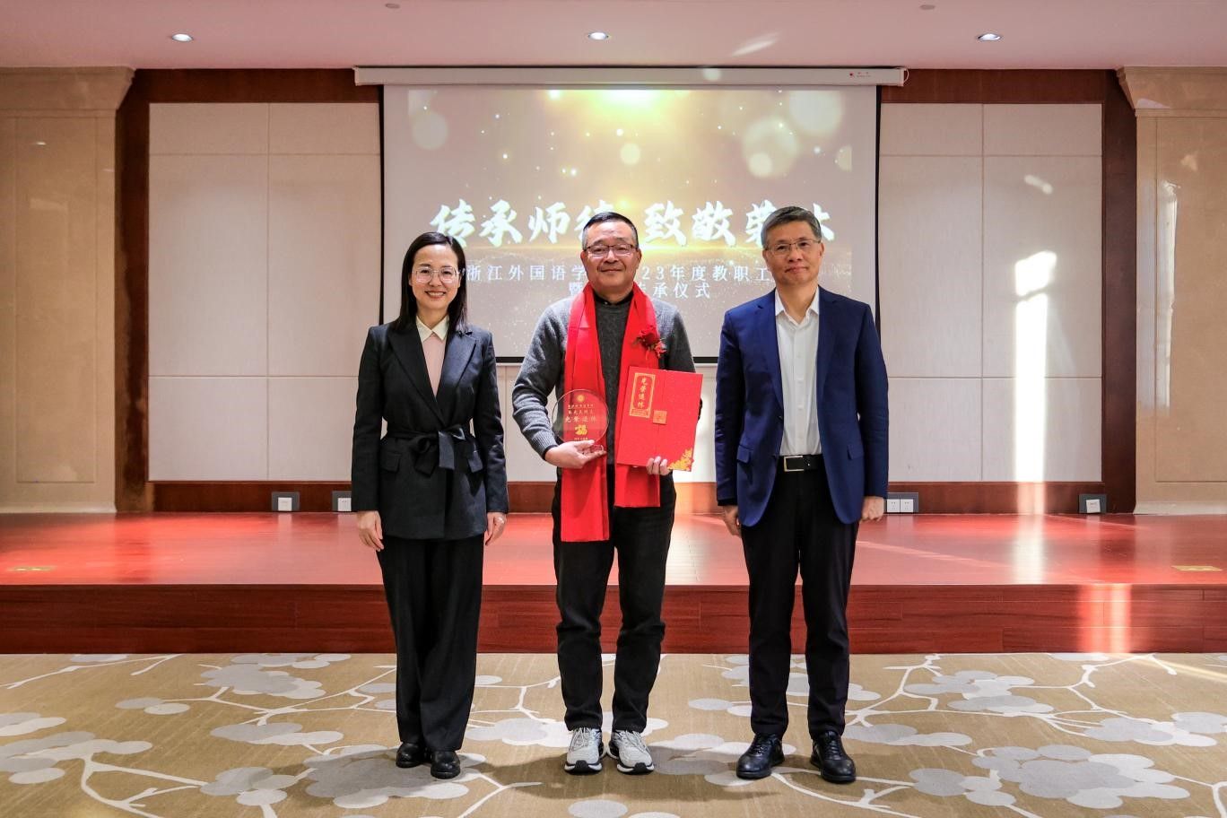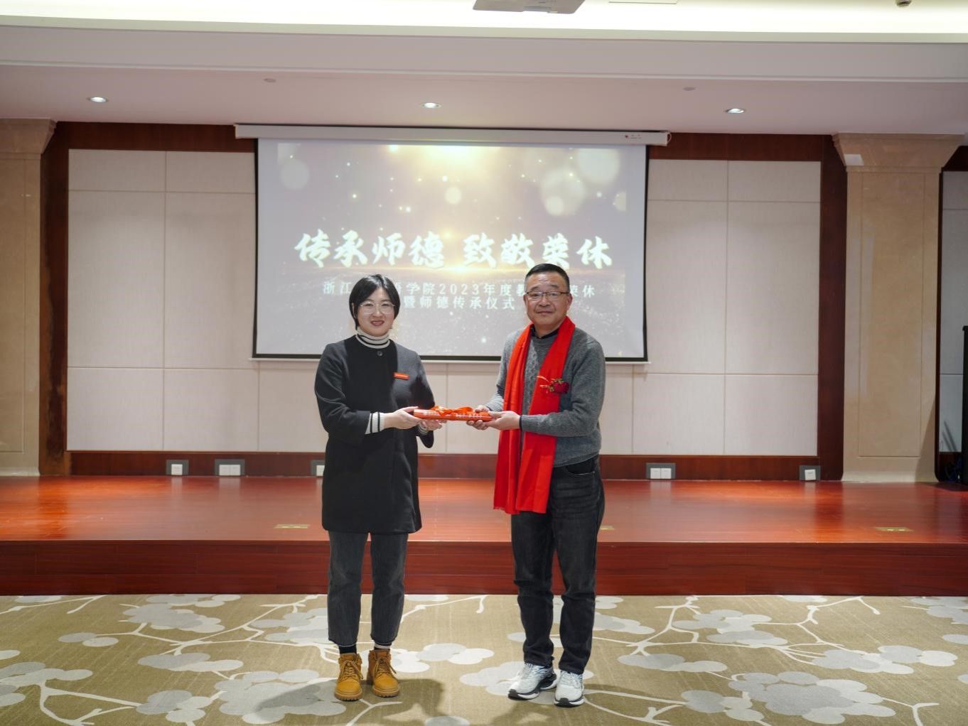 朱老师将镌刻着“闻道中华 语美天下”的浙外精神接力棒交给了澳门六合彩跑狗图 青年教师代表来晓维。来老师表示,在适应“高校教师”这一身份的过程中,受到了以朱老师为代表的诸多老师的指点和帮助。在未来,她将秉承朱老师等前辈的精神,承担起建设浙外、传承师德的重任,续写属于自己的浙外故事。