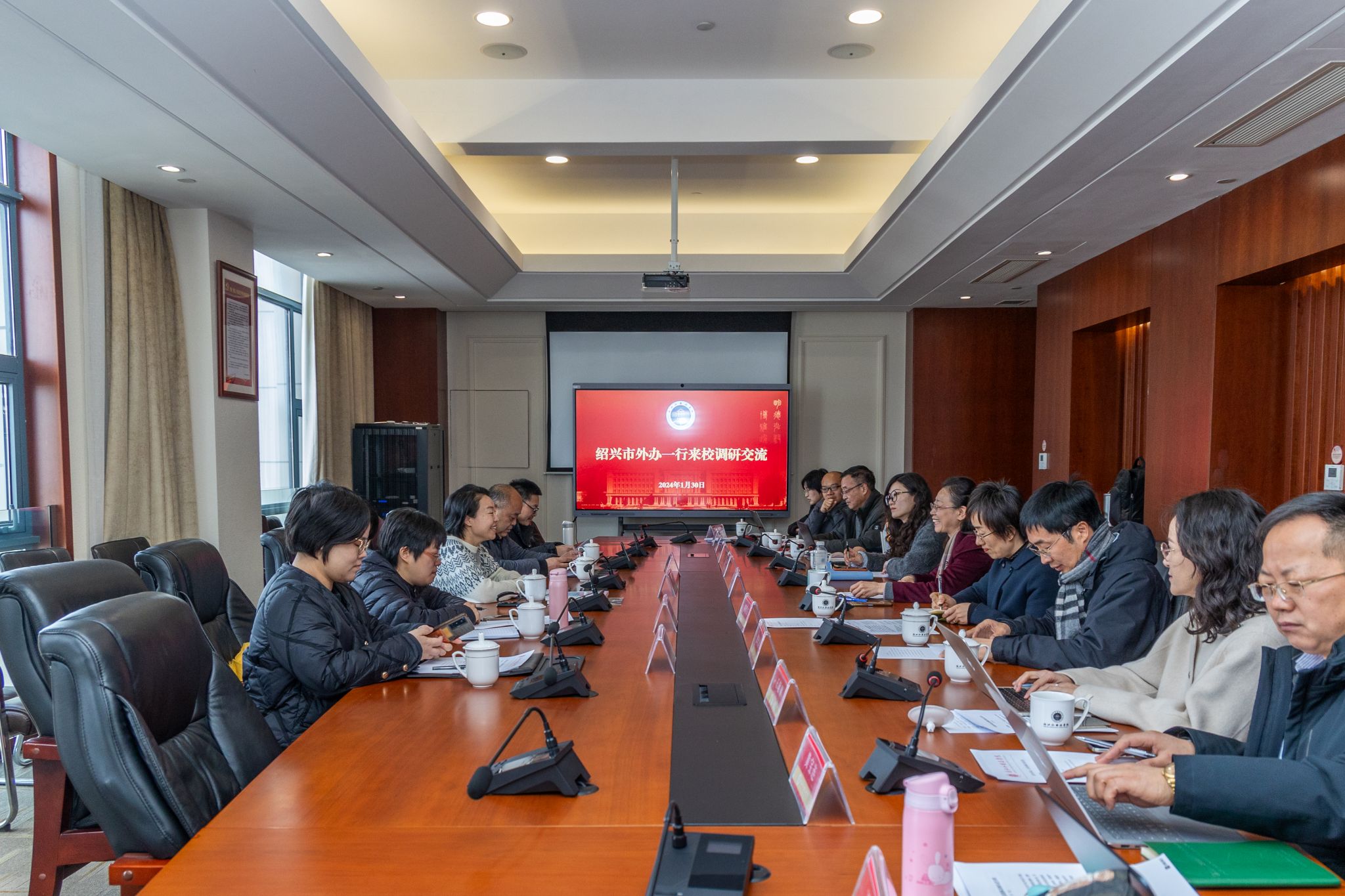 1月30日,绍兴市外办副主任谢妍一行来校调研。副校长、党委委员柴改英主持座谈会。会前,校长、党委副书记张环宙会见了谢妍一行,她对中国绍兴第五届国际友城大会把大运河文化作为主线表示充分肯定,并就浙外发挥特色优势助力第五届国际友城大会,向世界分享大运河文化保护传承利用的研究成果等提出了建议。