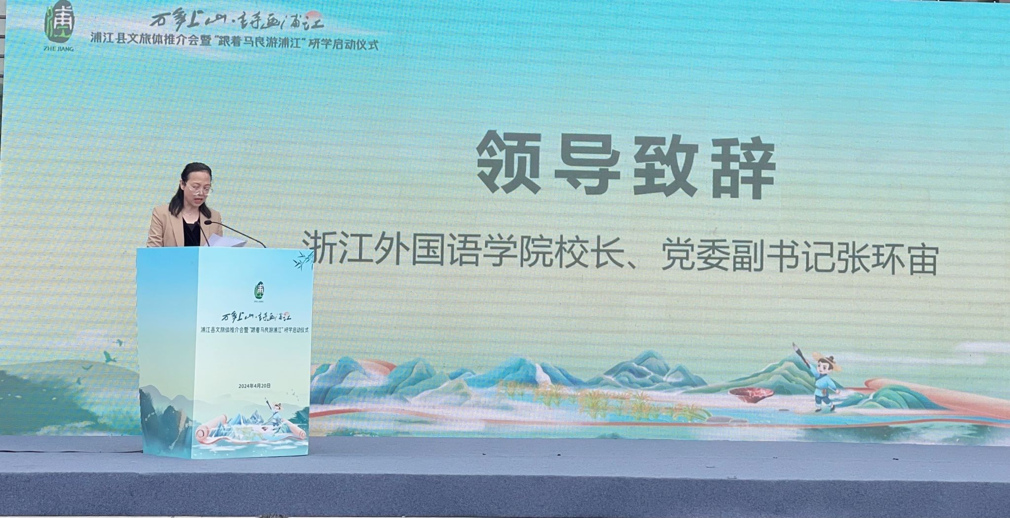 蝶舞莺歌喜岁芳,柳丝袅袅蕙带长。在最美人间四月天,4月20日上午,由浙江外国语学院、浦江县文化和广电旅游体育局共同主办的“万年上山·诗画浦江”浦江县文旅体推介会暨“跟着马良游浦江”研学启动仪式在杭州德寿宫举办。校长、党委副书记张环宙出席启动仪式并致辞。