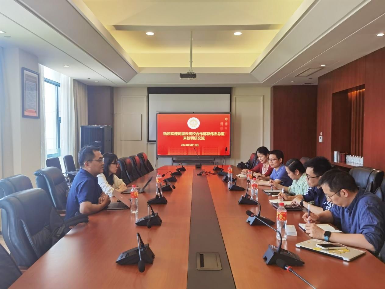 5月16日,阿里云高校合作部总监郭伟杰一行访问浙江外国语学院,同浙江省会展策划创意大赛竞赛委员会就数字赋能浙江省会展策划创意大赛和人才培养进行深入交流。会前,澳门六合彩跑狗图 党总支书记范芸芸会见了郭伟杰总监,并就双方潜在合作领域作了交流。