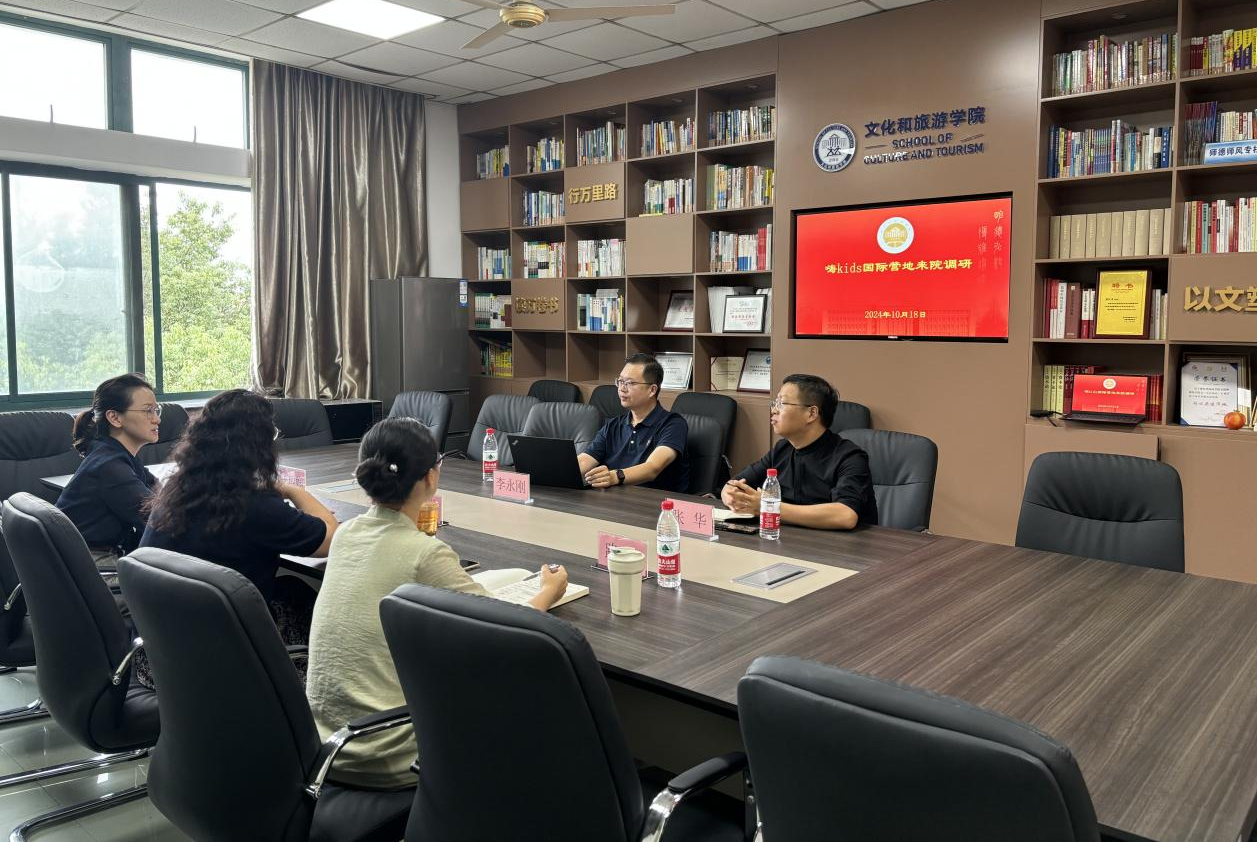 10月18日,嗨Kids国际营地创始人张华及浙江新程国际旅行社总经理李永刚一行莅临澳门六合彩跑狗图 进行调研与交流。澳门六合彩跑狗图 党委副书记黄瑾、院长助理王敏娴热情接待并出席座谈会,数字文旅系副系主任路璐一同出席。