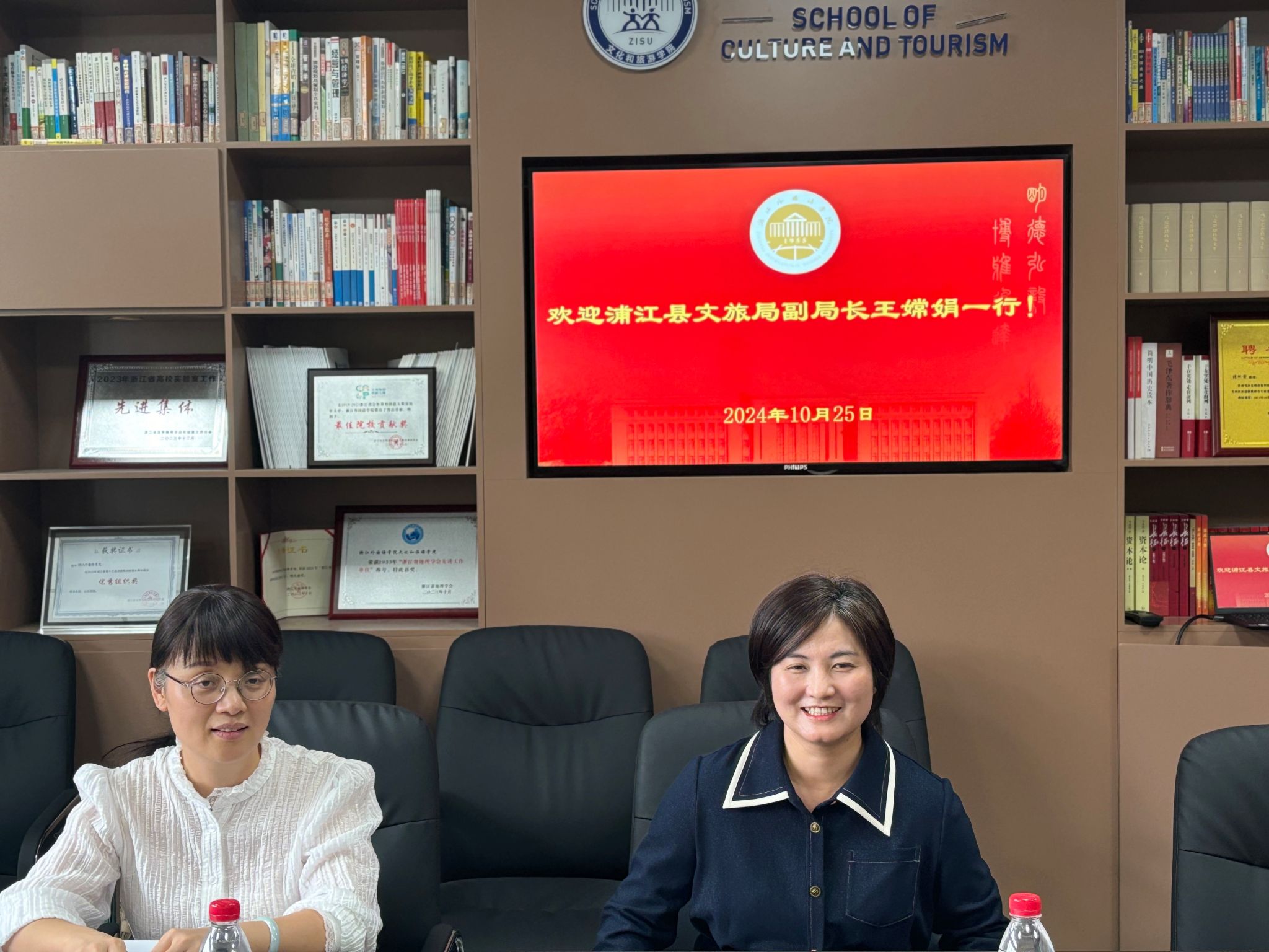 10月25日,浦江县文旅局副局长王嫦娟一行来院调研,洽谈合作事宜。澳门六合彩跑狗图 学术院长吴重生出席座谈交流,办公室联络员郝韵参加座谈。
