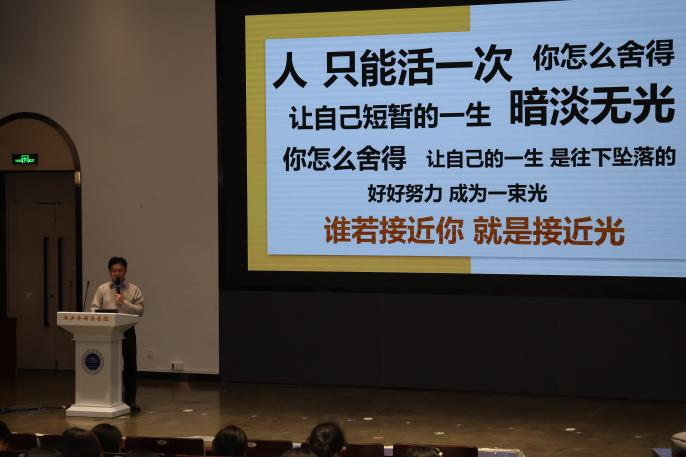 活动最后,朱烜学长用他喜欢的一句话来做结束语“人只能活一次,你怎么舍得让自己短暂的一生暗淡无光,你怎么舍得让自己的一生是往下坠落的,好好努力,成为一束光,谁若接近你,就是接近光。”他鼓励同学们要踏实肯吃苦、保持善良和初心,努力成为一束光,照亮自己前行的道路。